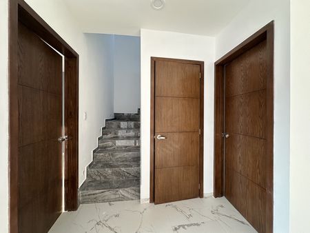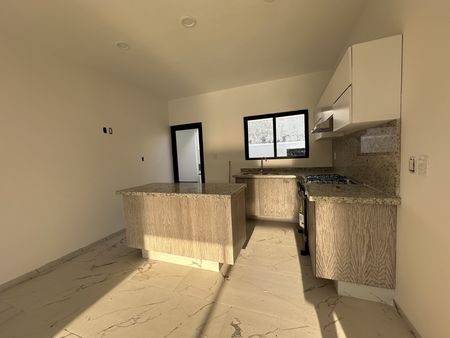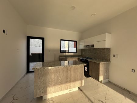 Sala - Comedor, Cocina integral, Medio baño, Recámara con vestidor y baño, Recámara con clóset y baño, Área de lavado, Alberca con cascada, Área de asador, Garaje para dos vehículos