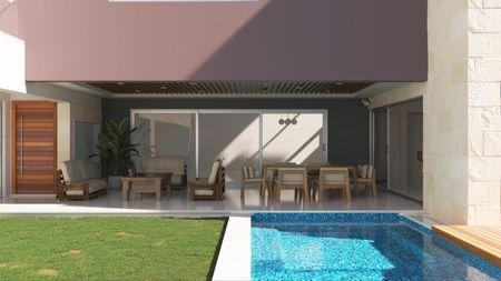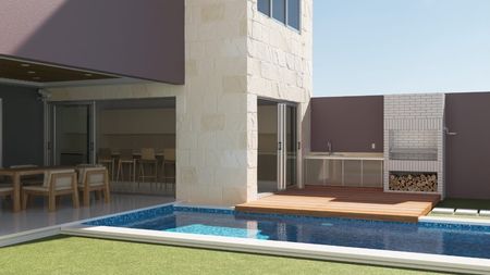 JARDIN Y ALBERCA (3 X 11 Mts.) ASADOR, BAÑO COMPLETO, TERRAZA TECHADA (4.40 x 9.55) TERRAZA ABIERTA ,ASADOR , BARRA DE PREPARACION (3.60 x 4.30 Mts.)tarja
